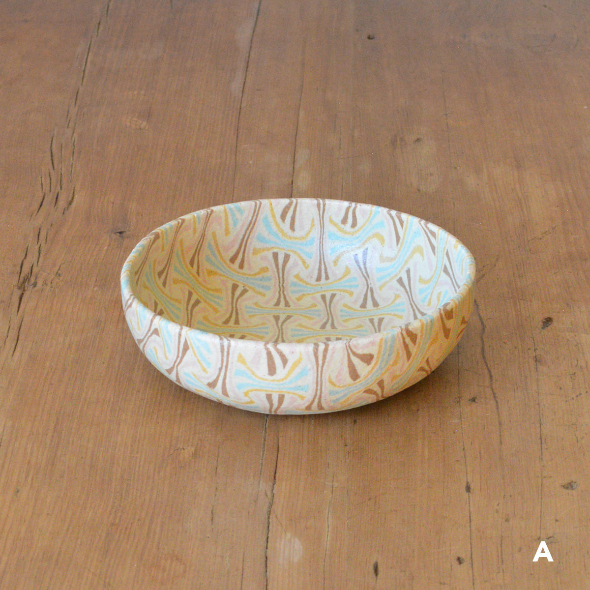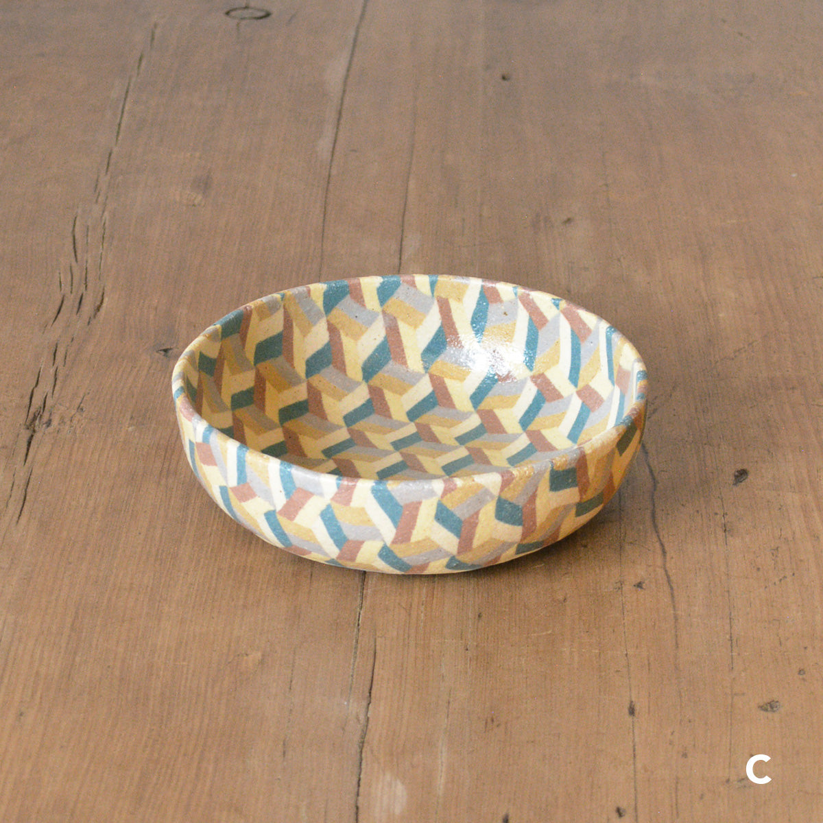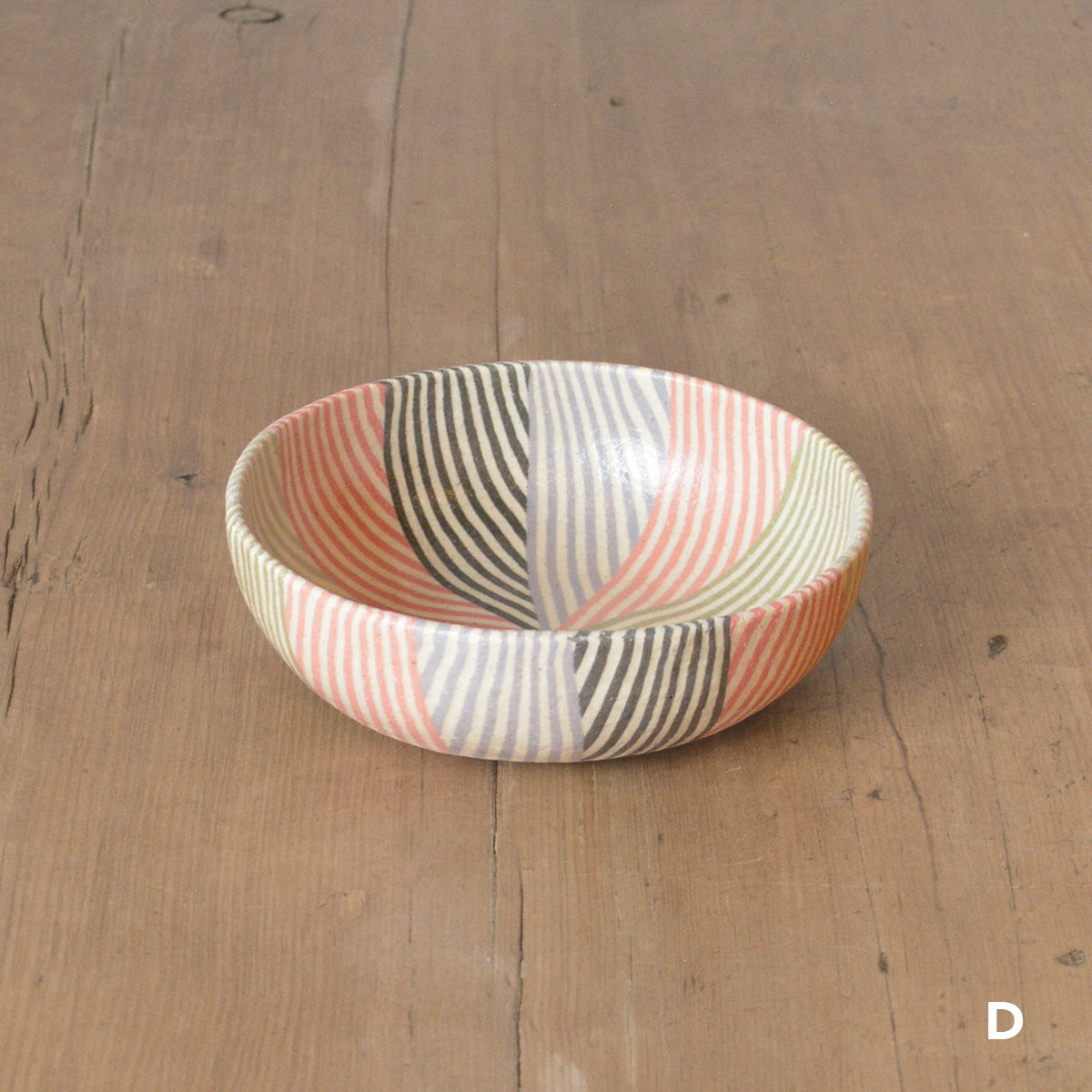 静岡県富士宮市出身の酒井美華さんによる練り込みの器。カラフルに彩られた規則正しい模様たちは、唯一無二の特別な作品です。