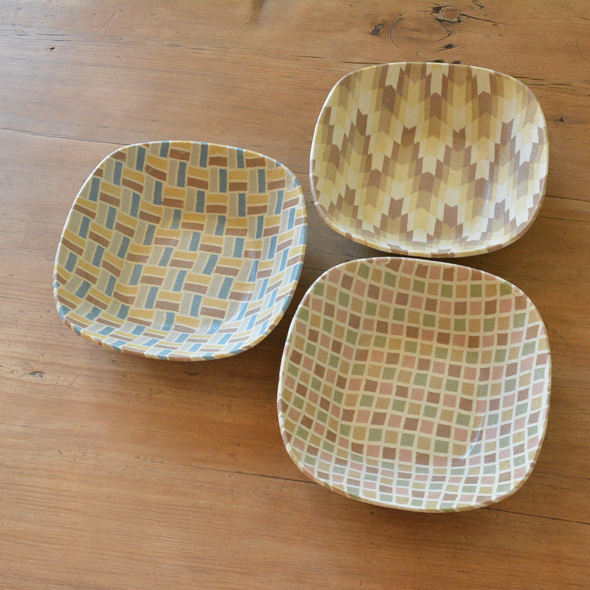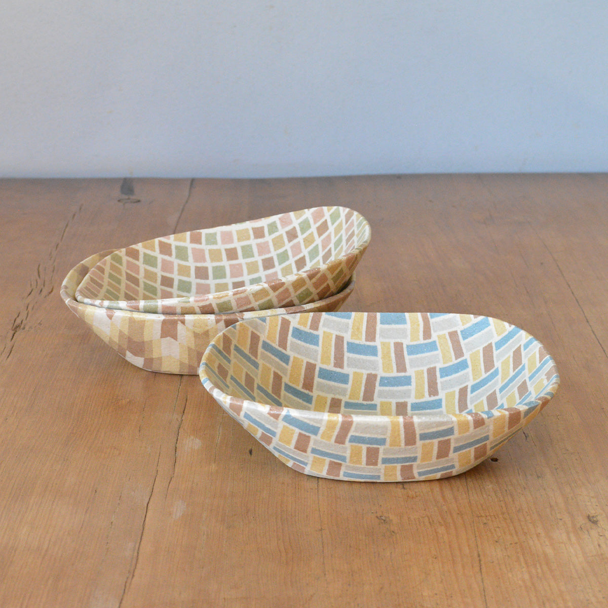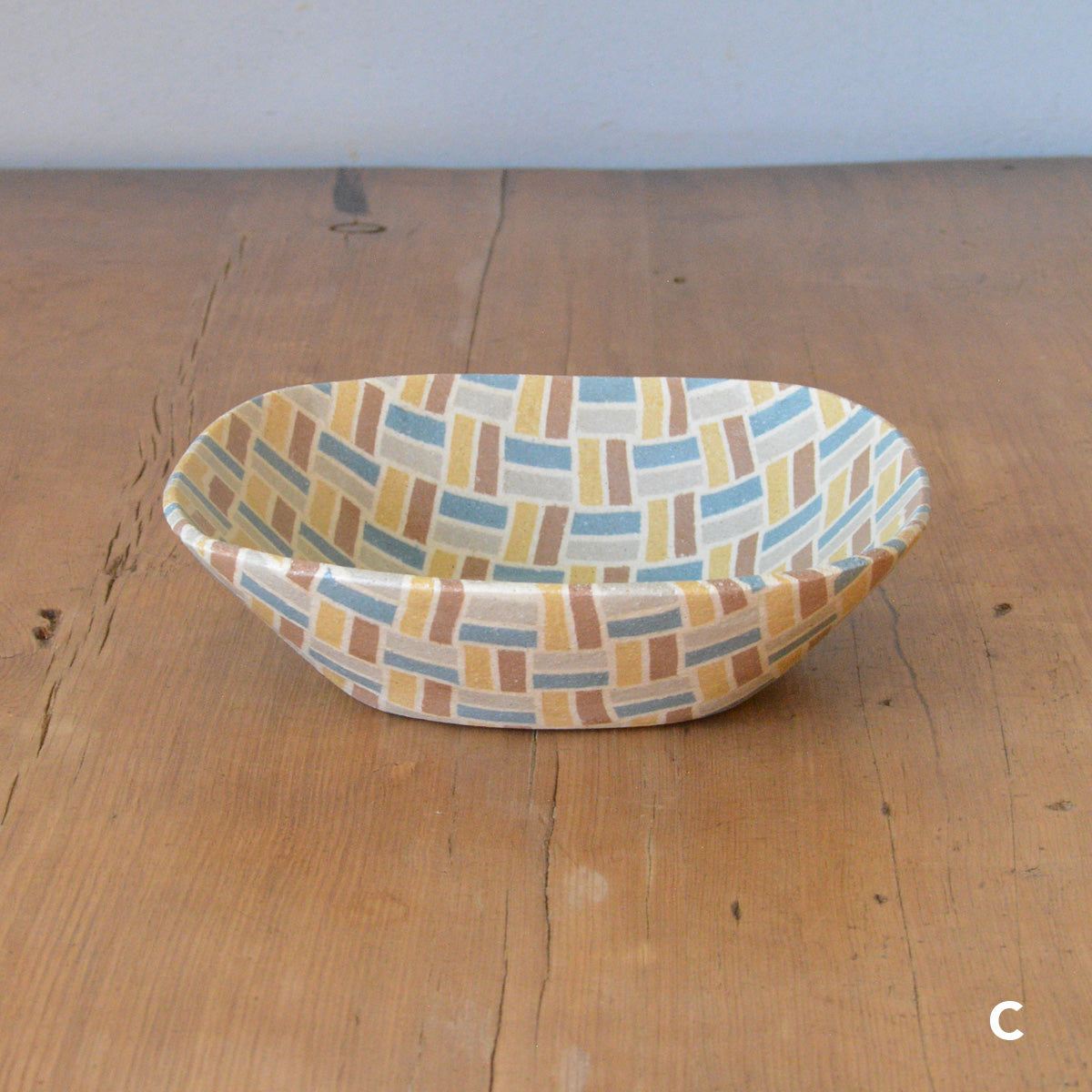 静岡県富士宮市出身の酒井美華さんによる練り込みの器。カラフルに彩られた規則正しい模様たちは、唯一無二の特別な作品です。