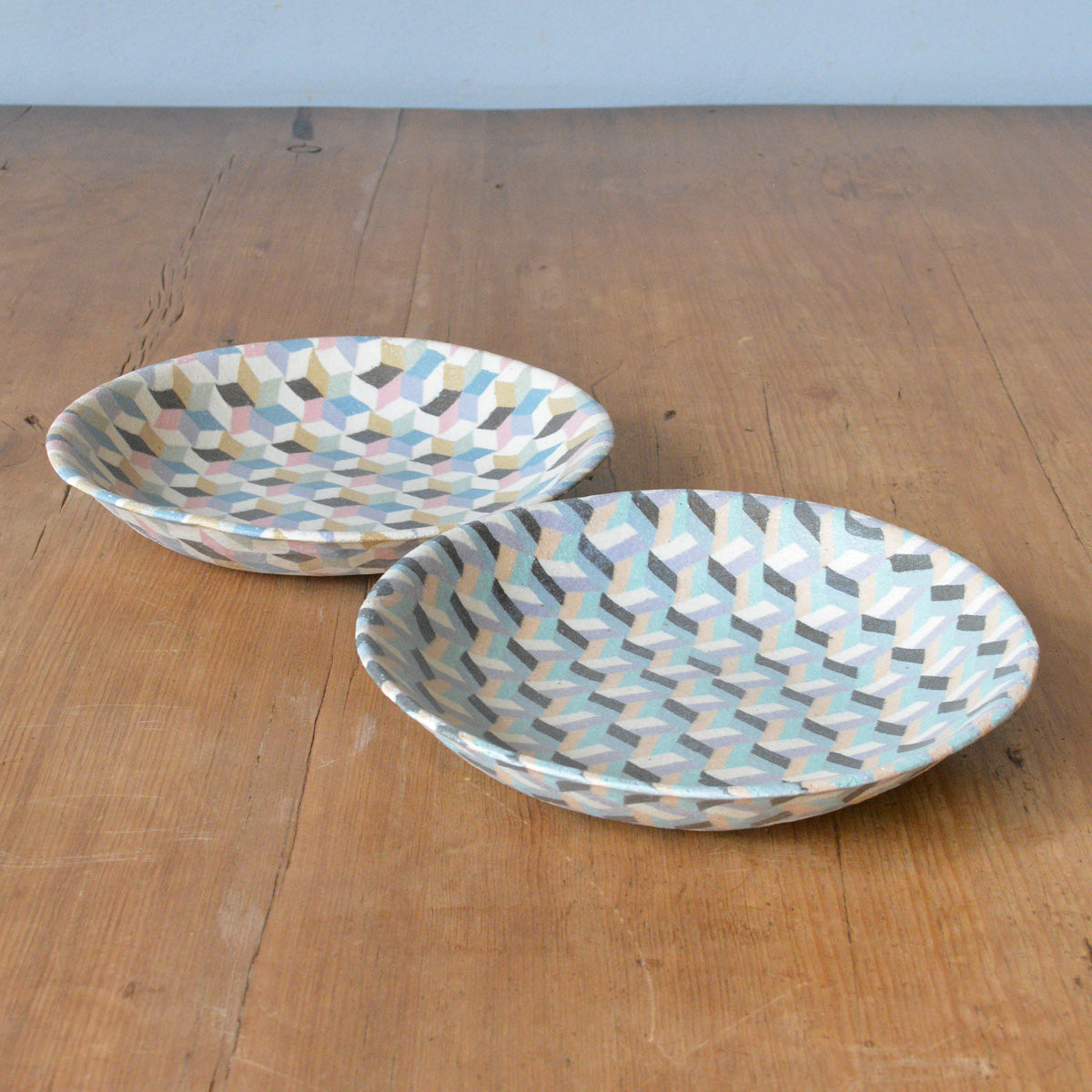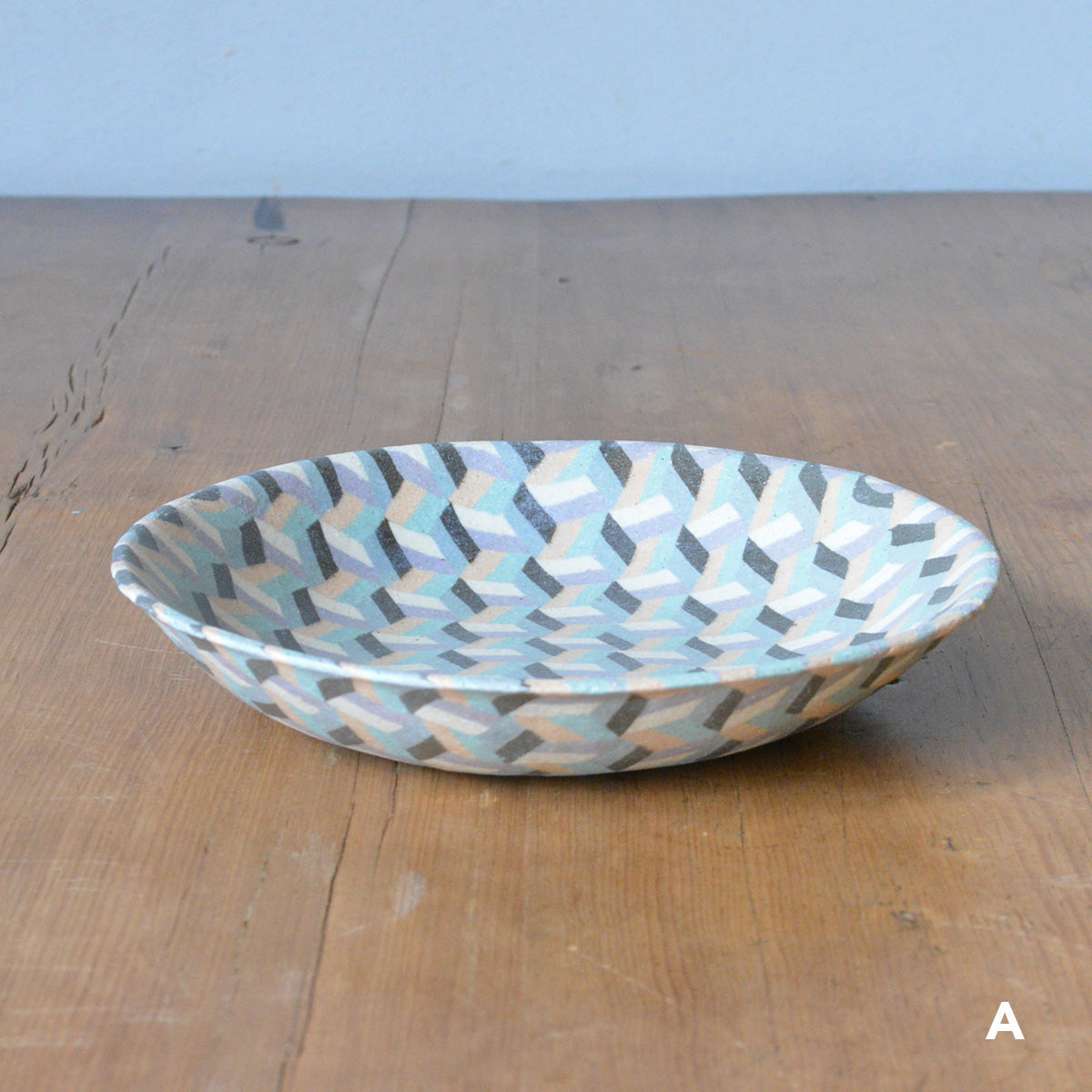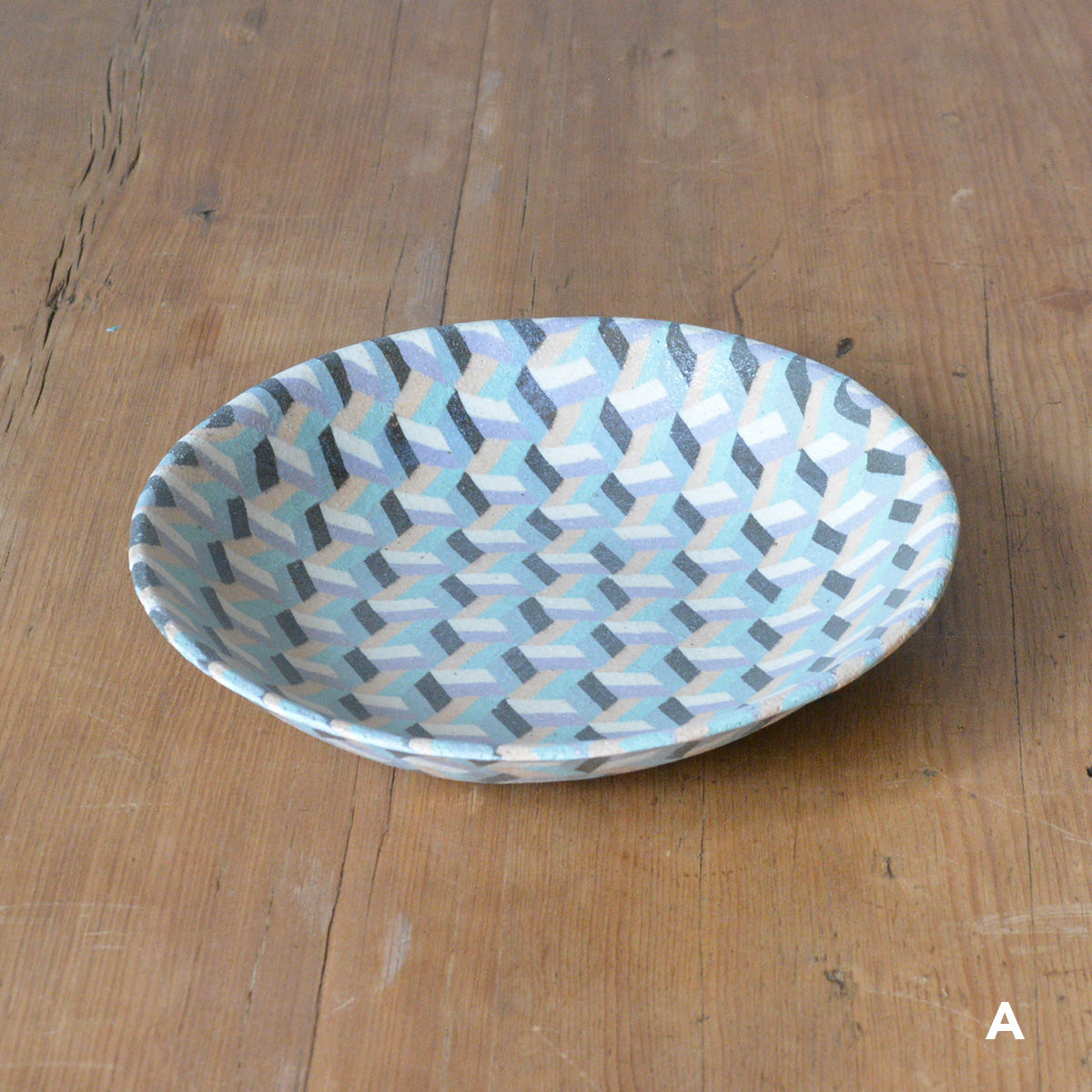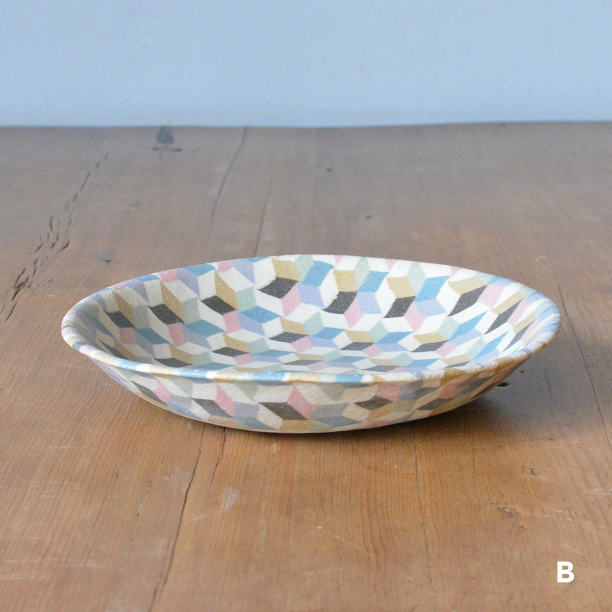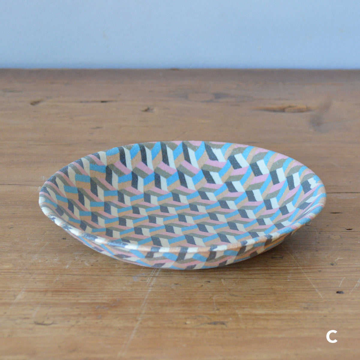 静岡県富士宮市出身の酒井美華さんによる練り込みの器。カラフルに彩られた規則正しい模様たちは、唯一無二の特別な作品です。