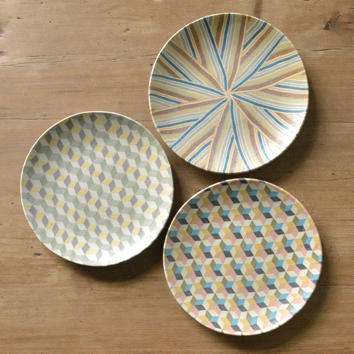 静岡県富士宮市出身の酒井美華さんによる練り込みの器。カラフルに彩られた規則正しい模様たちは、唯一無二の特別な作品です。