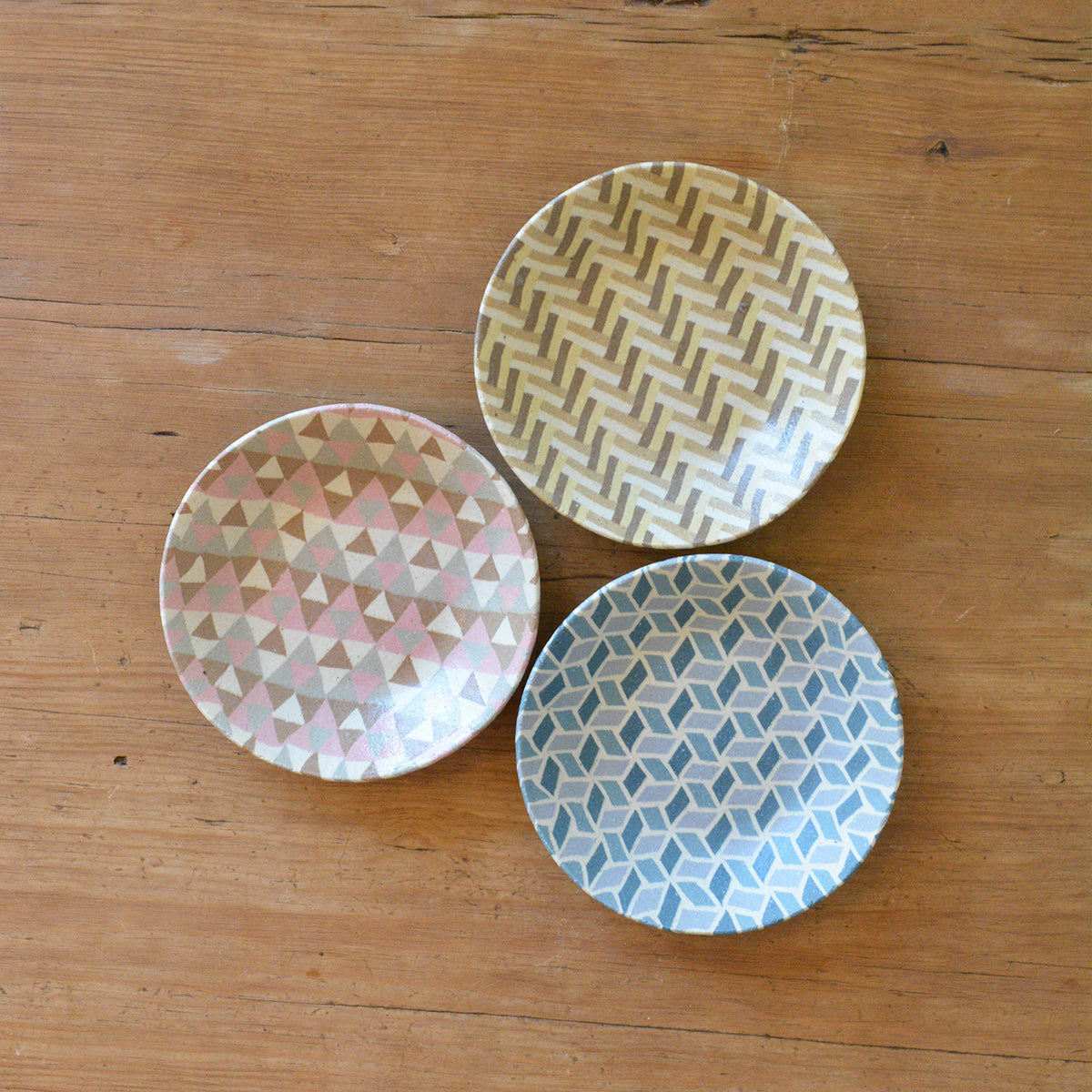 静岡県富士宮市出身の酒井美華さんによる練り込みの器。カラフルに彩られた規則正しい模様たちは、唯一無二の特別な作品です。